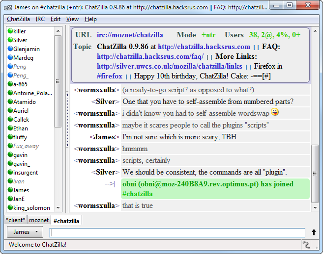 ChatZillaA clean, easy to use and highly extensible Internet Relay Chat (IRC) client.