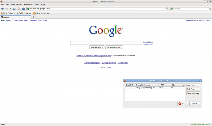 GoogleSharingThe Firefox Addon for the GoogleSharing system. GoogleSharing ultimately aims to provide a level of anonymity that will prevent google from tracking your searches, movements, and what websites you visit.